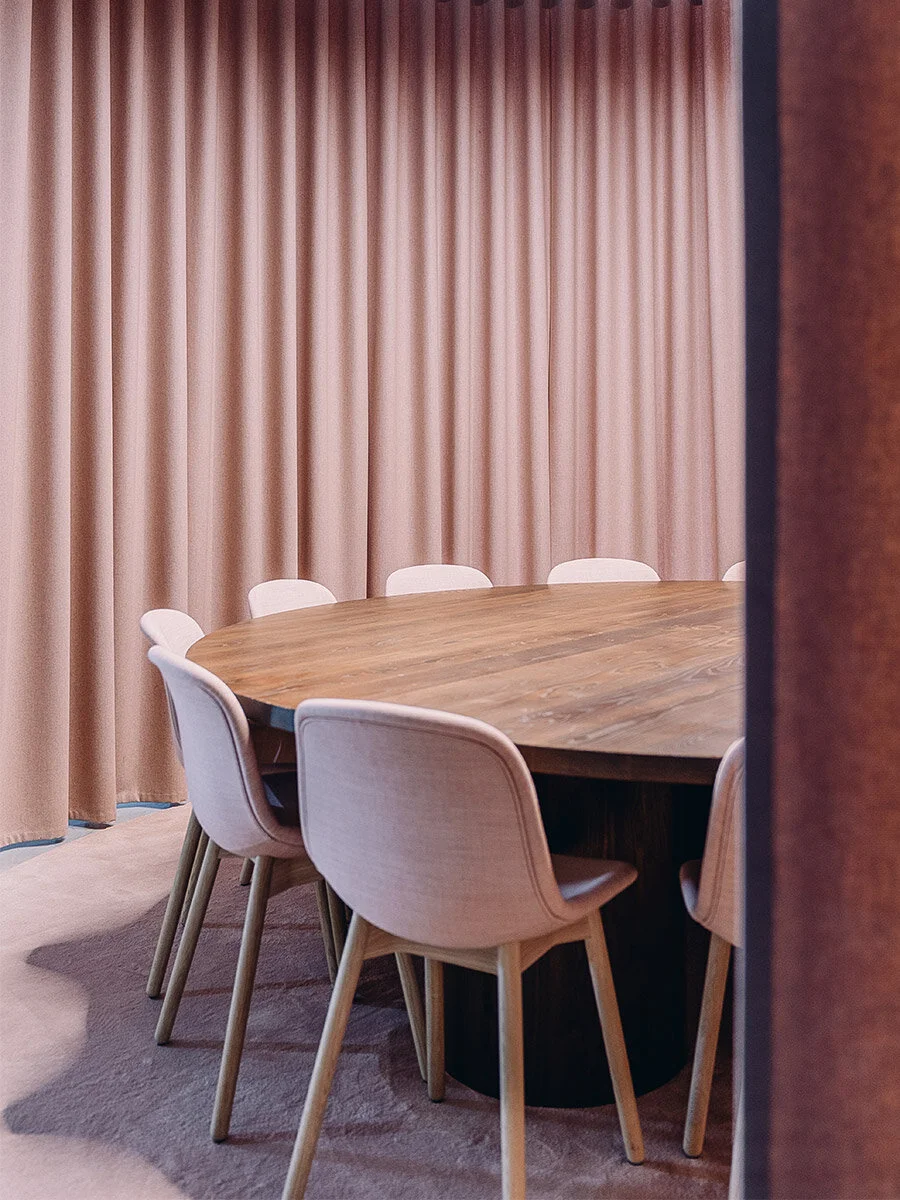 Binnen project De Hoorn werd er een volledige verdieping toegewijd aan interne en externe meetings. Een waaier aan mogelijkheden voor meetings van 6 tot 60 personen. Boîte stelde de invulling van de verschillende ruimtes in vraag en speelde in op de verschillende behoeften van bedrijven. Van brainstormruimtes, over kleinere focus-ruimtes tot meer formele meetingruimtes. Altijd met voldoende flexibele break-out voorzieningen. Een impressie van de vergaderruimtes toont de verscheidenheid van invulling zonder de eenheid in sfeer uit het oog te verliezen.