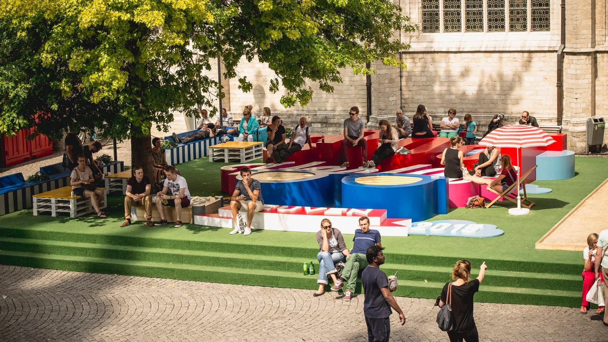 Het Groot Verlof is het zomerprogramma van de stad Leuven. Met muziek, lekker eten en openluchtevenementen beleef je een hele zomer lang een vakantiegevoel in de stad. In samenwerking met Uncompressed zorgde Boîte meermaals voor unieke eye-catchers op en rond de Grote Markt. De ontmoetingsplaats werd een fysieke vertaling van de affiche in een sfeervolle en vrolijke, grafische stijl. Zeer herkenbaar, speels en toegankelijk voor jong en oud.